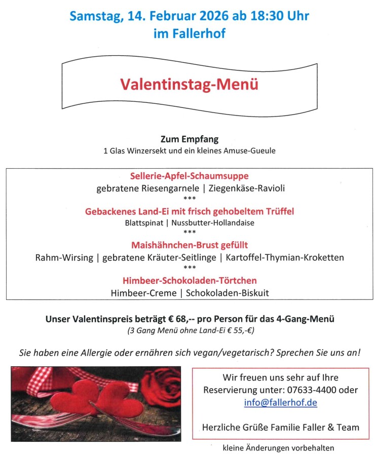 zum Preis von € 99,-- pro Person inklusive einem feinen 4-Gang-Menü & einem Glas Sekt zur Begrüßung.